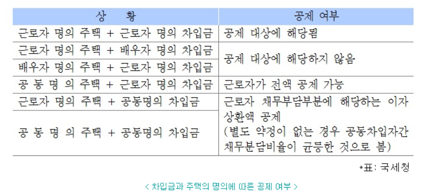 < 차입금과 주택의 명의에 따른 공제 여부 >