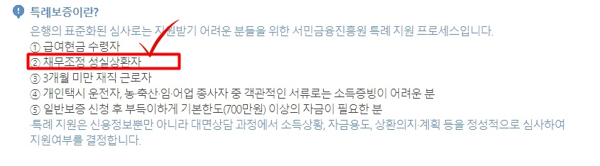 2번항복을 보면 채무조정 성실상환자도 대상이다.